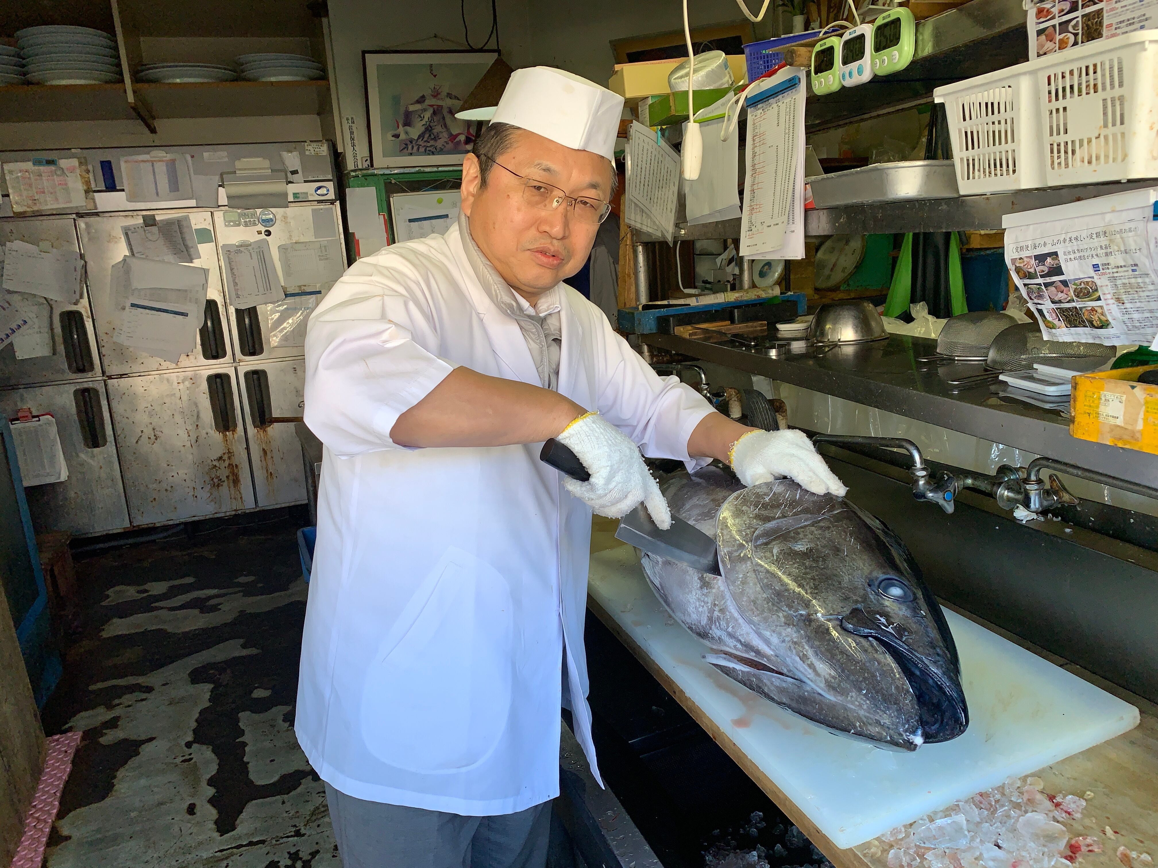 上五島若松瀬戸の朝締め本マグロを一本まるごと仕入れ、調理長が捌き、